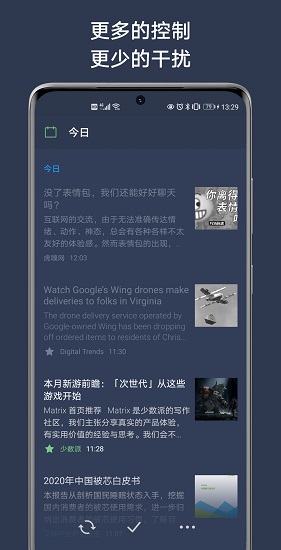 阅读列表的设计是为了让读者尽可能多地阅读文章,而不会使文章过于杂乱或缺少有用的信息。你想要执行的所有操作都只需一次滑动或点击即可!