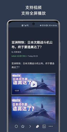 允许您阅读部分收藏内容的完整文章,同时提供一致的阅读体验,通过双击激活它(显示文章的全文,即使该文本未包含在提要中, 同时可以为每个订阅源设置自动获取全文)。