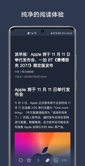 精简文章内容的样式,带来更「干净」的阅读版面。