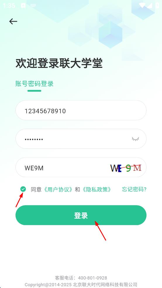 4、勾选同意用户协议和隐私政策,然后点击登录按钮。
