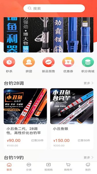 秒杀,拼团,新品预售,优惠券,积分商城等功能,为钓友打造简单,快乐的消费体验。 方便快捷的消费入口,各类海道产品一个不漏。