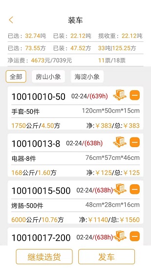 3、收好货,叉车称重,手机量方,快速给出参考定价,自动打印面单托运单,节省开单人力,降低收货员经验依赖,客户在家发货。