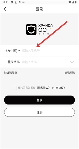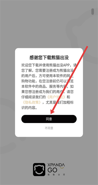 1、点击“感谢您下载熊猫出没”弹窗的“同意”,进入注册登录界面。