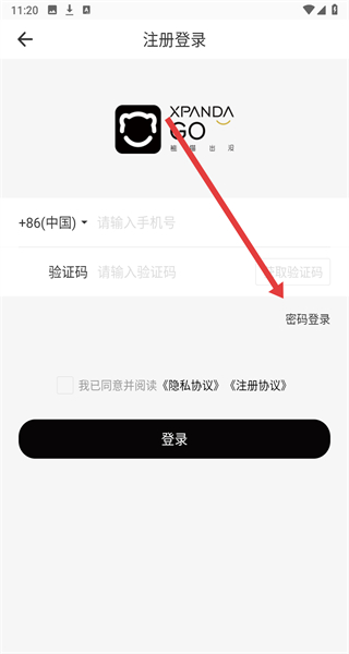 2、在登录页面中点击“密码登录”,切换到密码登录模式。