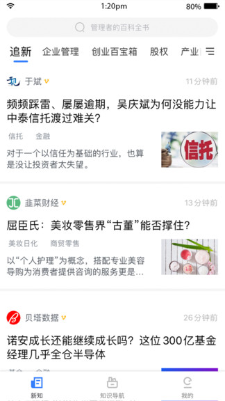 老板新知官方版是一款专门为各大公司管理者提供咨询的软件。用户可以在平台上时刻查询到自己公司的行业数据发展趋势,以及同行公司的一些资讯,还可以学习一些经典的成功案例增强决策能力同时学习管理知识更好的管理公司。