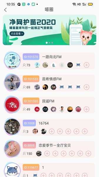 喵音app年轻人交友聚集地,特色的语音简直是声控党的福利,超高颜值的小哥哥小姐姐一起畅所欲言,丰富的话题让你不仅可以交友脱单还可以一起连麦组队找cp一起开黑,在软件里找到志同道合的小伙伴快来下载试试吧!
