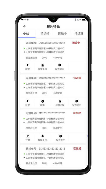 4、舜世通司机端app为参与物资供应链过程的各协作方提供统一的订单、运输、结算协同作业。