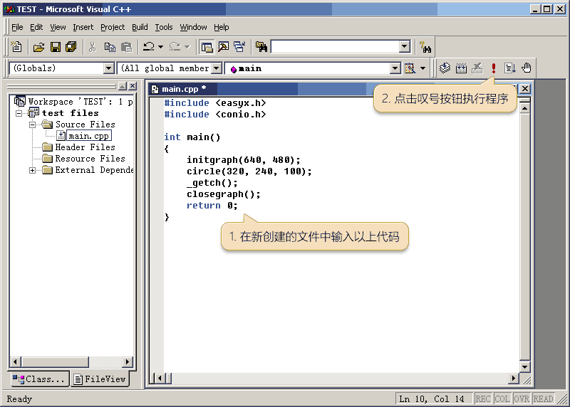 以上,就是在 VC6 的控制台应用程序中使用 EasyX 的全部步骤。