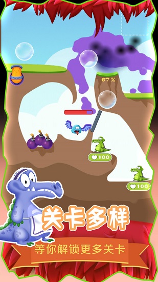 救救小鳄鱼运用你的智慧把小鳄鱼就出来,游戏中设有多个关卡,你要通过各种操作才能顺利把鳄鱼救出,当然也有一些非常好用的道具你也可以使用。每一关你要根据任务的提示来操作,如果不小心失误操作那么就要重新开始了。欢迎有需要的朋友下载试玩!