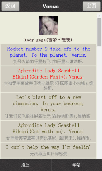 6、每句歌词都有中文歌词大意,帮助你迅速领略歌曲神韵。