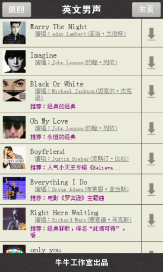 1、受欢迎的英文歌学唱软件,通过这个应用你可以更好的学习到大量的英文歌曲。