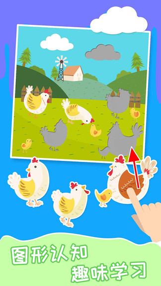 快乐小鸡3免费版模拟了丰富的游戏场景,玩法特别的生动有趣味。玩家们可以在游戏中学习拼图、识图等等。这个游戏非常适合亲子之间一起玩哦,让孩子们快速认知不同的小动物。游戏没有网络也是可以玩的,大家赶快来下载吧。