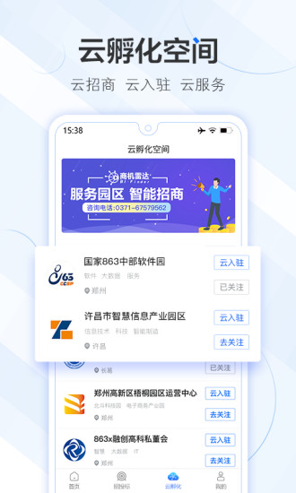 商机雷达主要服务商务人士,打通商机信息,并针对产业园区、孵化器等商业人士集群提供云孵化功能。