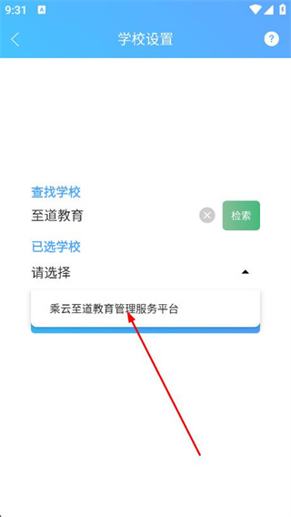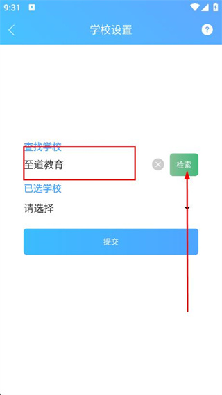 1、打开app,在学校设置页面,输入学校名称点击检索。
