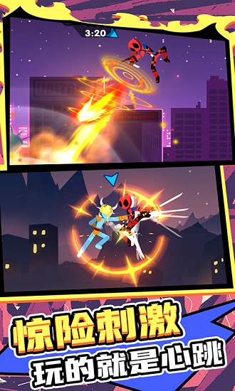 《火柴人王者2》全球火爆的火柴人横版格斗上线了!好斗的火柴人们要通过一场较量决定谁才是这个世界的最终霸主,谁才是世界最强王者。游戏操作简单,通过操作灵敏的遥感移动火柴人,右边则为攻击与防御的操作栏。火柴人们自身携带属性,可通过升级强化自己的攻击力与血量。可有众多角色提供选择,各类觉得带有不同的攻击手段,选择合适自己的角色。