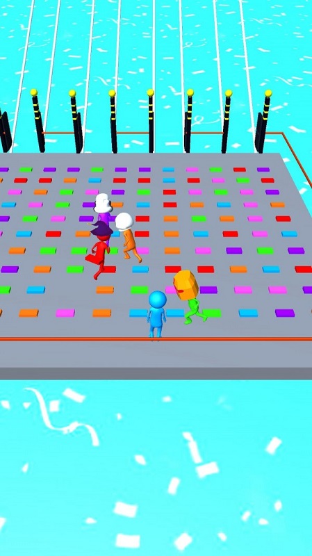 -起始会有6-8人在同一空旷场地中收集与自己颜色相同的砖块;