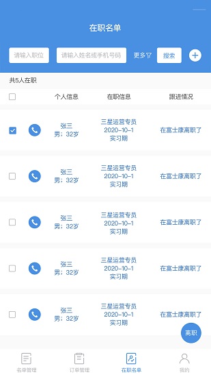 4、你可以将不同用户的信息直接通过手机来录入,随时可以查看他们的求职状态,提高入职率