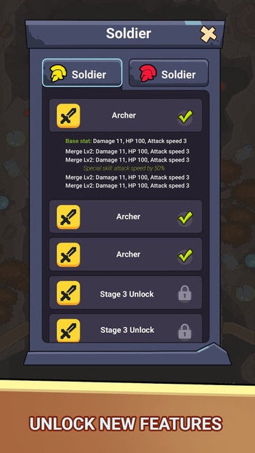 2、每个士兵都有自己的特性技能,组合在一起更是能够大幅度提升军团的作战能力。