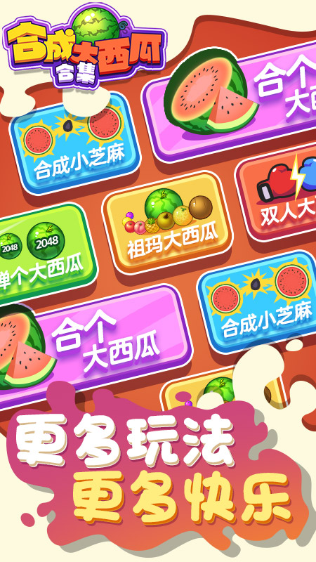 2、包含合成小芝麻、合个大西瓜、弹个大西瓜、祖玛大西瓜等丰富不同的游戏模式。