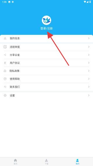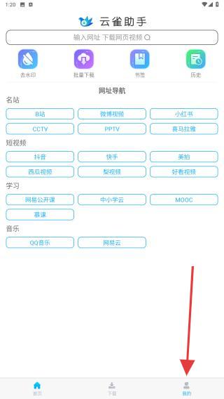 1、打开云雀视频下载器APP,在首页内点击右下角我的图标。