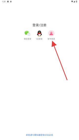 3、在登录/注册的页面内,点击账号登录的按钮。