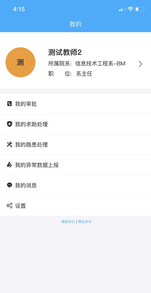 云南省学生安全管理系统教师端主要包括:学生考勤记录、请假审批、求助处理、隐患申报处理、考试批阅、个人中心等功能模块。老师登录app后,可操看操作待办事项(包括请假审批、上报的求助信息、上报的隐患信息等),也可以查看学校安排的各项考勤情况,同时,还可以批阅学生提交的考试情况等。