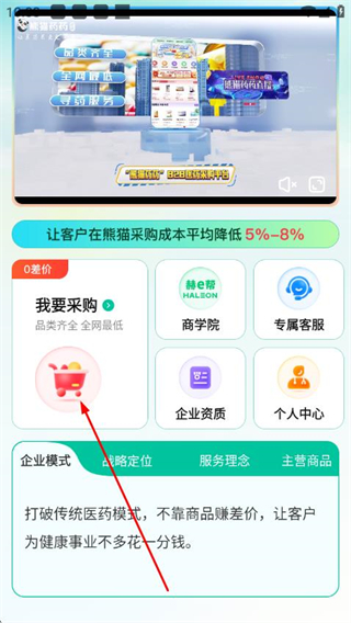 1、打开熊猫药药的首页,点击我要采购,进入采购页面。