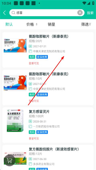 3、在搜索结果中选择目标药品,进入商品详情页。