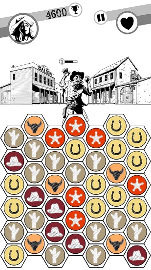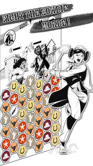 在一座西部城镇里,许多居民由于受到不明病毒的感染变成了僵尸,玩家作为幸存者要想办法消灭不断袭来的僵尸,每消除一次方块就能对僵尸造成一次伤害,消除的方块越多造成的伤害也就越大。玩家还可以强化角色来让自己获得更多的分数