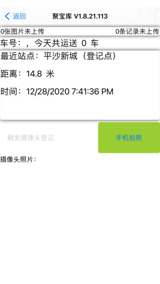 聚宝库送运官方版能够让物流方面的工作人员办公起来会更加方便高效。用户只需要在手机上安装软件后连上摄像头就可以自动的记录车辆的详细信息,能够方便的帮助工作人员统计每天仓库的车辆进出数量以及车辆信息,十分好用。