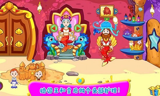 1、小小人鱼家族游戏里,玩家可自行选择场景进行体验,感受非常有趣的快乐服务;