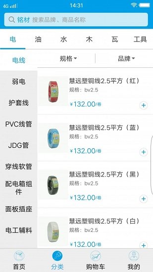 3、通过商品的分类,选择类别即可看到对应建材
