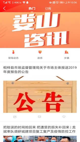 娄山资讯是桐梓县的官方没听信息发布平台,主要面向生活在这里的百姓们,这里可以随时查看当地的各种新闻讯息,还能够办理各种民生服务,税务登记、企业查询、交通违章、婚姻预约、医疗挂号等等,还有各项便民服务,高铁汽车、酒店预订、人事招考等,非常方便,帮助当地人民更好的生活。