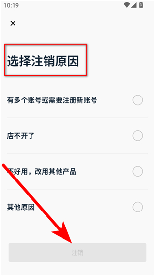 4、在注销原因选择页面,选择对应的注销原因后,点击注销按钮,即可完成账号注销操作。