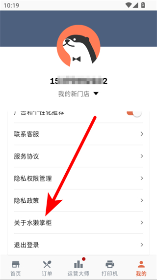 2、在个人中心页面,点击关于水獭掌柜选项,进入关于页面。