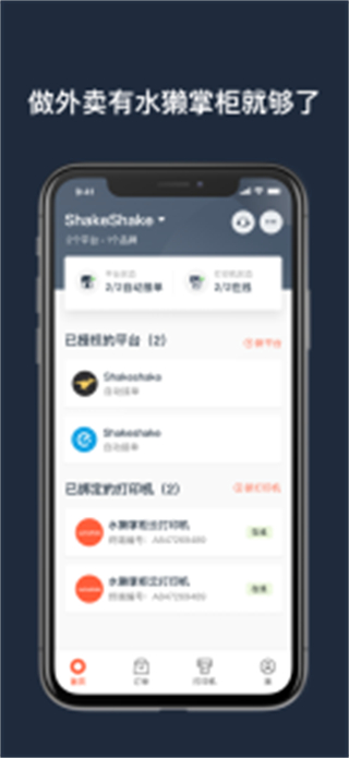 水獭掌柜是使用水獭掌柜打印机必备的管理软件。主要功能有店铺管理、打印机管理、订单管理等。店铺管理可以关联多平台的外卖店铺,从而管理全平台的订单,进行订单查询、订单处理等操作。水獭掌柜是您的外卖店铺一站式管理平台,让您轻松管理店铺。