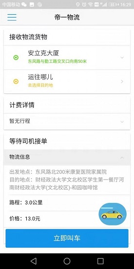 帝一服务一款物流软件,平台上面有着很多的单子,价格路程都是公开透明的,货主可以全程追踪自己的货物走向不用担心不见了。同城之间但快递更加的迅速当天下单当天就能够送到地方非常的快捷。有需要的人快来下载吧。