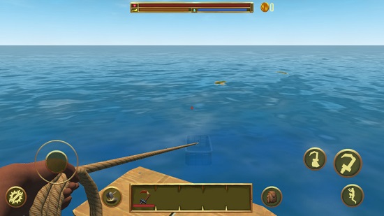 3、玩家还会遇到各种危险,比如:你钓鱼是可以获取食物的,但是也可能吸引鲨鱼的攻击,它们闻到血腥前来,看到木筏发起攻击。