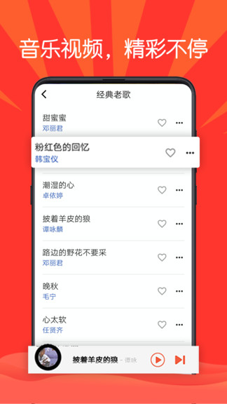 枸杞音乐最新版能够让中老年人能够很好的享受音乐的乐趣。软件的操作界面设计得非常简单明了,能够让用户快速适应上手,海量的曲库以一些老歌为主能够让用户很容易找到自己喜欢的音乐,还可以直接缓存下来随时收听。