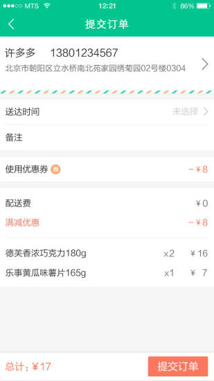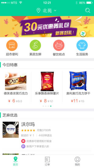 2.1元起送:各种新鲜水果,包含瓜子花生,干果零食,饮料酒水,米面粮油,蛋糕点心等商品,只要您下单,小芝麻保证1元起送,为您所需,想您所想。