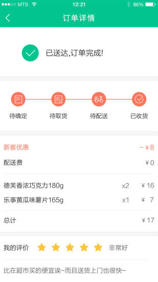 3.30分钟送达:下单30分钟内,商品即可送货上门。