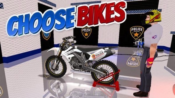 3、简单场景世界,操控警察角色挑战摩托车竞技,各种关卡任务。