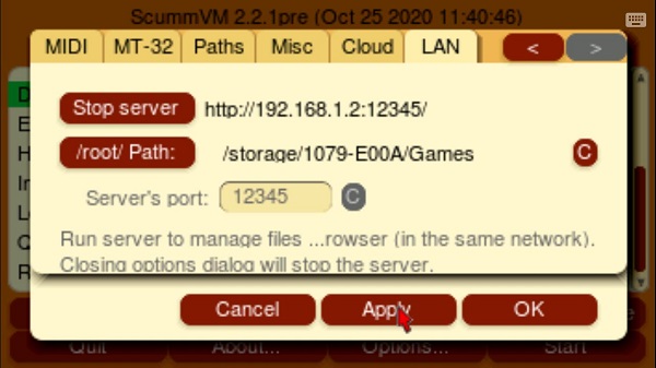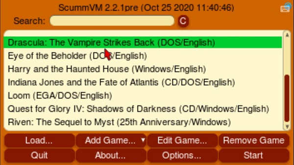 ScummVM提供了一种播放许多经典的图形化点击式冒险游戏和RPG的方式,例如SCUMM游戏(例如Monkey Island和《触手之日》),Revolution's A Steel Sky下的革命等等。