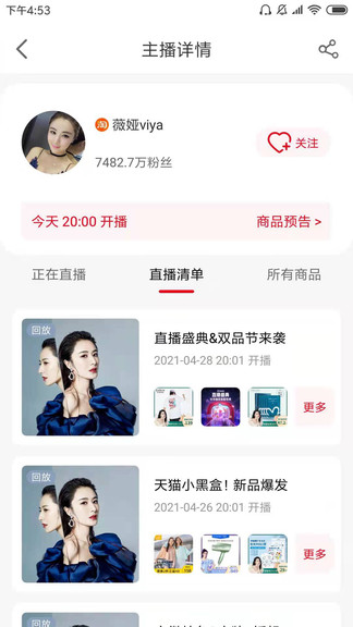你想买最新版能够提供多各平台的所有带货资料。用户可以将主播带货的商品与网上的各大商城对比价格得出谁的更便宜,还能够直接预约一些自己感兴趣的主播的带货直播,能够了解到真正的实惠的商品信息,购买到各种优惠的商品。
