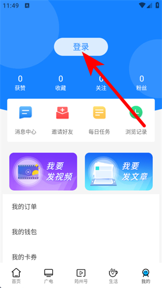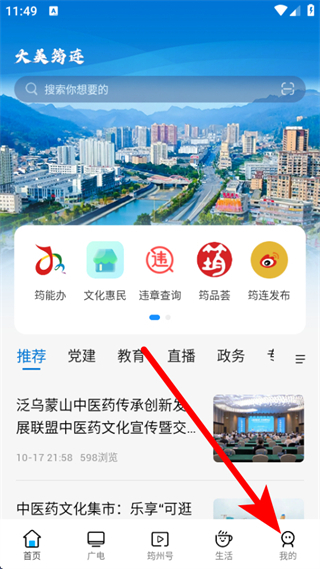 1、在大美筠连的首页,点击底部我的按钮,进入个人的页面。