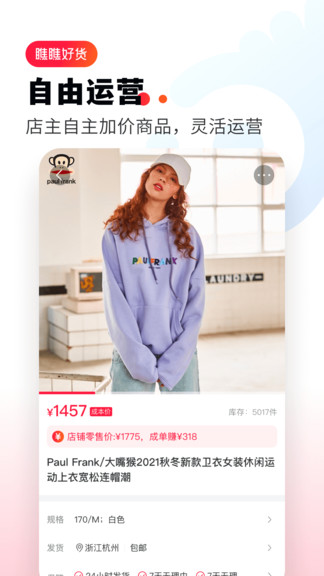“瞧瞧好货APP”是瞧瞧(海南)科技有限公司开发的社交电商共享服务平台,赋能个人通过社群即可创业,赋能工厂/品牌商搭建私域社交电商销售网络。店主入驻成功后,可通过选货市场选货,自己加价,管理自己店铺商品上下架、查看订单、查看会员等店铺管理操作。可通过分享带动好友一起发现优质商品,更能将自己精心挑选的商品分享给别人。