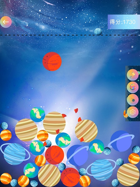 3、采用天文星球知识布列,从小到大依次合成,让游戏有了新奇的感觉;