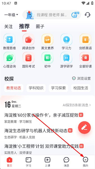 1、打开高途app进入首页,点击底部导航栏中我的选项,进入个人相关操作界面。