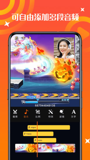 录屏录音大师是一款针对手机屏幕录像的利器,可以灵活的进行录制,体积小,得心应手,灵活录屏,高清流畅,可以随心所欲的录制自己的视频,攻略,视频解说,高分操作等。可以调用手机摄像头,录制桌面的同时还可以将摄像内容录制进去,在录制结束可以针对录制内容进行全方位的剪切、剪辑、各种效果、文字等操作,方便您将录制内容发布到社交圈。另外还可以对屏幕图像随时截屏,保存您的屏幕图像。