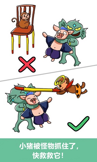 一款有趣的休闲游戏,需要玩家打开脑洞去解答谜题,通过关卡,可以锻炼想象力和逻辑思维能力,破除规则想法的益智游戏,简单的画面不仅没有让游戏失去更多的乐趣,反而在它们的映衬下,更加凸显了无厘头的搞笑风格!无比有趣的谜题设定,轻松活跃的游戏音乐,让你的大脑充分运转吧!